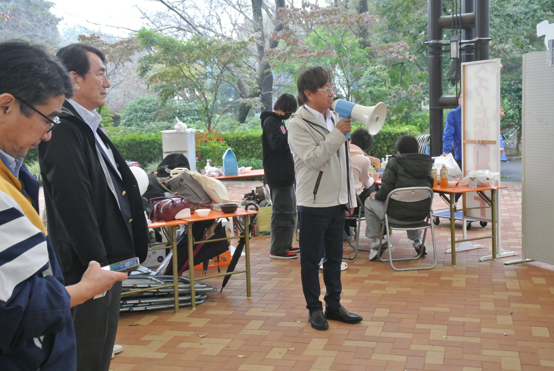 船橋市国際交流協会副会長で実行委員長の小田原隆泰さんが、雨天の中