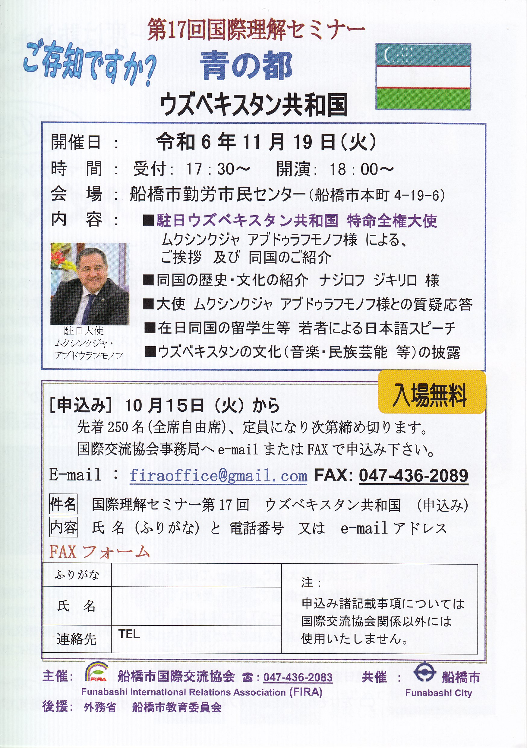 国際理解セミナー~ウズベキスタン共和国を開催します。