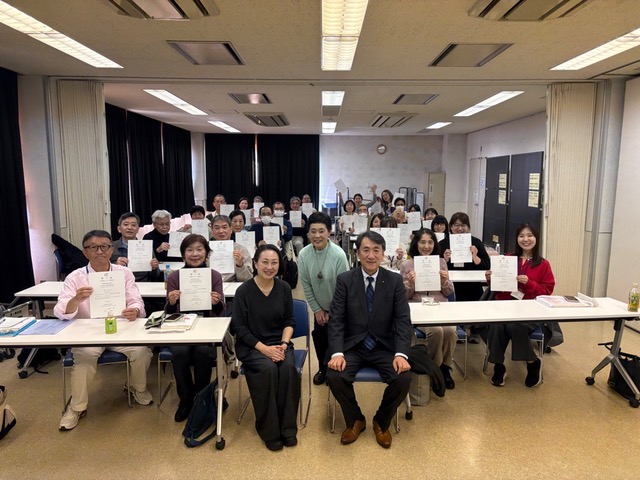 令和7年1月から3月の期間で、宮本公民館を中心にして学習していた 日本語学習支援ボランティア養成講座が 3月21日に終了し、 29名が会長から修了書をいただきました。